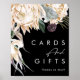 Nous avons conçu ce panneau de signalisation Fleurs blanches Cartes et Cadeaux noirs pour compléter votre mariage rustique sombre tropical. Avec sa verdure bohème à l'aquarelle et ses fleurs modernes de l'hiver boho, y compris la protéa, le dahlia et le lotus séché, le design est sûr de mettre en valeur votre thème noir et vert minimaliste et lunatique. Modifiez le texte et ajoutez une photo pour le personnaliser. Assurez-vous également de parcourir le reste de la collection pour trouver des articles coordonnés qui rassembleront l'ensemble de votre mariage ! https://www.zazzle.com/collections/white_floral_collection-119896729923706651