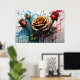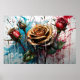 Affiche Fleur de rose jaune et bourgeons de rose rouge