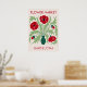 Cette impression d'art est dans le style d'un poster de marché aux fleurs dessiné dans l'art naïf.