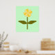 Cette impression colorée présente une image numérique d'une marguerite avec une tige verte avec deux feuilles verts et des pétales de couleur jaune clair et foncé. C'est un design simple, mais beau. L'arrière - plan est de couleur vert pâle avec une bordure vert foncé. Cette conception est disponible sur plusieurs tailles d'impression différentes, dont la plus grande est présentée ici.