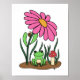 Conception d'affiche simple et joyeuse d'une fleur, grenouille, champignon et escargot.