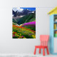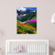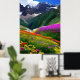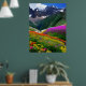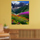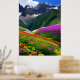 Fleurs sauvages - Un Imaginaire AI Art numérique d'impression Paysage dans un média mixte style impressionniste artistique d'une vallée dans les montagnes remplie d'un tapis de fleurs fantastiques dans une variété de couleurs. Ce joli et coloré imprimé relaxant, serein célèbre la majesté et la beauté de la toile de Mère Nature.