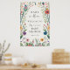 Panneau de bienvenue de la douche nuptiale fleurie. Le design comporte une frontière de fleur sauvage. Personnalisez avec vos informations ou cliquez sur "Cliquez pour customiser plus loin" pour modifier les styles, la taille et les couleurs des polices.