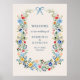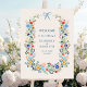 Poster de bienvenue du Mariage Rustic Blue Bow fleur sauvage.