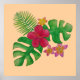 Un dessin au crayon d'aquarelle que j'ai fait d'une fleur rose tropicale entourée de feuilles verts.