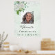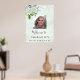 Une affiche de bienvenue pour une fête d'anniversaire de 50e (ou tout âge). Personnalisez et ajoutez une photo, un nom et un âge. La brosse verte couleur eau se dessine comme arrière - plan avec la poussière de parties scintillant faux argent, décorée de fleurs blanches, de roses et de verdure. Dos : pas de design.