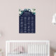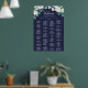 Cette affiche classique de la marine à fleurs blanches alphabétique est parfaite pour un mariage de automne. Ce panneau peut être utilisé pour organiser vos invités par ordre alphabétique ou par numéro de table. L'élégant design floral présente des roses blanches et en ivoire, des pivoines et du chrysanthème, avec des touches de fleurs d'aquarelle bleu percé et du feuillage vert sur un arrière - plan bleu foncé. Ce poster mariage peut accueillir jusqu'à 120 personnes. Faites place à plus (ou moins) de clients en cliquant sur le bouton "personnaliser" et diminuez ou augmentez la taille de la police. En plus du placement de chaque invité, personnalisez ce panneau avec les noms de la mariée et du marié et la date du mariage.