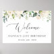 Ajoutez une touche personnelle à votre fête d'anniversaire avec ces objets de fête élégants et mémorables ! Le design présente des fleurs d'aquarelle blanche et de la verdure sur l'arrière - plan blanc.