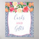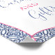 Des kumquats et des tranches d'agrumes à l'aquarelle dansent avec des fleurs roses vives, sur un fond de motif de carreaux vintage espagnols bleu et blanc pour ce panneau / décoration de mariage ou de Baby Shower / Anniversaire.