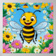 Joyeux dessin souriant Abeille volant dans la prairie avec des fleurs colorées