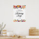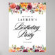 Bienvenue aux invités à votre événement avec ce signe de bienvenue personnalisable fête d'anniversaire. Il présente des guirlandes florales de fleurs d'automne dans les tons bordeaux, orange, roux et rouge avec des accents de feuillage. Personnalisez en ajoutant vos détails. Ce signe d'anniversaire fleuri d'automne est parfait pour les fêtes d'anniversaire d'automne.