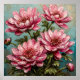 Peinture à l'huile magnifiquement texturée présentant des fleurs de chrysanthème roses détaillées et des feuilles vertes