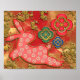 Affiche Fleurs de découpe de papier Rabbit d'or rouge Nouv