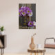 bouquet mum d'automne violet en boîte rouille sur bois rustique