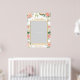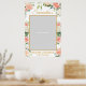 Ceci est un accessoire de photo pour une douche de nuptiale bohème de printemps avec un cadre d'affiche comportant des fleurs de pêcher épanouies et un arrangement de verdure fraîche avec des lettres scintillantes dorées