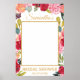 Ceci est un beau cadre d'accessoire de photo affiche avec des fleurs printanières roses, corail, pêche et bourgogne accentuées de lettrage calligraphique à paillettes