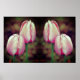Affiche Fleurs de tulipes roses gouttes de pluie en miroir