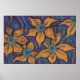Affiche Fleurs d'or, art floral abstrait, orange violet