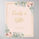 Ce panneau élégant à motif floral rose pastel | cartes et cadeaux est parfait pour votre mariage botanique printanier rose boho. Le design présente un cadre en dorure à la feuille accompagné d'une simple rose pêche champagne aquarelle, de feuillage de eucalyptus vert sauge minimaliste, et d'une fleur sauvage coquelicot corail neutre, moderne et unique. Le design est luxueux, idéal pour un mariage classique, chic, délicat en été, en automne ou en hiver. N'hésitez pas à nous contacter pour toute question concernant le design du produit ; à votre santé !