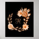 Affiche florale personnalisée avec monogramme noir, marron et pêche. Peut être encadrée.