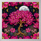 Affiche Fleurs roses et lune