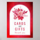 Fleurs roses et rouges, cartes botaniques en arc de feuillage et affiche mariage cadeaux. Un beau design mariage qui présente un cadre en arc sur arrière - plan coloré rouge. Dans le cadre il y a votre texte et un bouquet de fleurs dalia et de feuilles dans les tons rose et rouge.