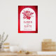 Affiche Fleurs roses et rouges et mariage de feuillage