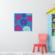 Affiche Fleurs roses et violettes sur bleu Turquoise