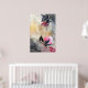 Aquarelle harmonique Fleurs roses Feuilles noirs Abstrait Poster de peinture.