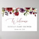 Ajoutez une touche personnelle à votre fête de baby shower avec ces objets de fête élégants et mémorables ! Le design est composé de fleurs d'aquarelle bordeaux, rose et violet et de verdure sur l'arrière - plan blanc.