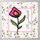 Une affiche avec votre nom personnalisé et une jolie fleur rose à l'intérieur d'un cadre carré avec une bordure rose. Le fond est un motif avec des fleurs sauvages roses dessinées à la main avec de longues tiges vertes et des feuilles sur un fond de couleur blanche coquille d'œuf. Des cercles roses et des brindilles décorent également le design. Conception florale fantaisiste et jolie.