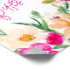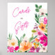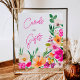 Un panneau de cartes et de cadeaux avec Elegant brillant et audacieux fleurs d'été moderne illustration avec fleur sauvage assez surdimensionnée et script de brosse signe de douche nuptiale avec une typographie de calligraphie moderne avec des fleurs rose néon, orange, vert et jaune brillant.