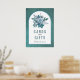 Affiche Fleurs turquoises et bleu aqua et mariage de feuil
