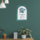 Fleurs turquoises et bleu aqua, cartes botaniques en arc de feuillage et affiche mariage cadeaux. Un beau design mariage qui présente un cadre en arc sur arrière - plan coloré turquoise. Dans le cadre il y a votre texte et un bouquet de fleurs dalia et de feuilles dans les tons bleus.