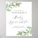 Bienvenue aux invités à votre événement avec ce magnifique panneau d'accueil pour bébé verdoyant. Il présente des illustrations aquarelles de verdure et de fleurs blanches. Ce panneau d'accueil vert pour bébé sprinkle est parfait pour les baby showers de printemps et d'hiver. Des éléments correspondants sont disponibles.