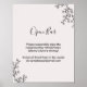 Ce poster de bar ouvert mariage à conte de fées fleuri est parfait pour une réception de mariage élégante. Le design romantique présente un lettrage simple orné de fleurs, un bordement botanique et un arrière - plan subtil et blush.