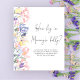Baby shower invitation comprend de magnifiques fleurs sauvages d'aquarelle et script de calligraphie qui est parfait pour les baby showers de printemps, d'été ou d'automne. Bébé en fleurs !
