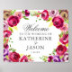 Accueillez vos invités mariages avec cette élégante affiche florale rose vif ornée de belles fleurs fuchsia et violette. Une belle typographie au-dessus des roses fait de cet imprimé un choix parfait pour un mariage élégant dans le jardin au printemps ou en été.