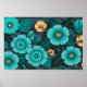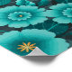 Affiche Florale turquoise et or avec Feuilles vert foncé