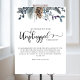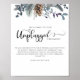 Bienvenue à vos invités lors de votre cérémonie avec ce panneau unique et élégant de la cérémonie Unplugged. 8" x 10" est simplement un exemple, vous pouvez choisir parmi une variété de tailles plus petites et plus grandes. Design floral à l'aquarelle délicat sur le dessus dans les tons bleu, ardoise, sauge et rouille. Utilisation de calligraphie manuscrite. Coordination des produits disponibles.
