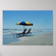 De belles affiches à encadrer qui présentent une photo de 2 transats et un parapluie jaune et bleu assis le long du rivage de Daytona Beach, Floride. Cette photo de vacances présente un ciel bleu magnifique et une eau bleue aux vagues écrasantes.