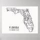 Affiche graphique et simple avec carte de l'état de Floride avec ses routes principales.
