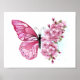 Flower arrangement of pink butterfly with rose Japanese cherry blossoms on white background.