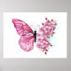 Flower arrangement of pink butterfly with pink Japanese cherry blossoms on white background.