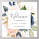 Cette affiche de mariage blanc de bienvenue aux fleurs rousses et marines est parfaite pour un mariage fleuri. Le design classique et élégant présente une aquarelle moderne bleu marine et des fleurs roses rousses. Customisez l'affiche avec le nom de la mariée et du marié, et la date du mariage.