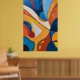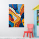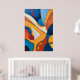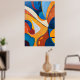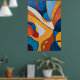 This vibrant abstract painting is a symphony of blues, oranges, and yellows with bold lines and dynamic shapes. The fluives curves and layered colors create a sense of movement and energy, evoking elements of nature or flowing water. Perfect for lovers de l'espèce contemporaine de l'enjoy bold, colorful coolé a apporté de la chaleur et de l'italien à tout l'espace.