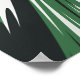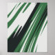 Un design abstrait avec des stries fluides et tranchantes en vert foncé, vert moyen et noir sur un arrière - plan blanc cassé. Les stries courent en diagonale du bas à gauche vers le haut à droite, créant un sentiment de vitesse, de mouvement et d'énergie, rappelant les effets du vent ou des mouvements rapides.