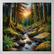 Vue pittoresque d'un paisible ruisseau forestier entouré d'arbres luxuriants et de fougères au coucher du soleil, évoquant un sentiment de tranquillité et de connexion avec la beauté de la nature.
