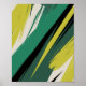 Une oeuvre d'art numérique abstraite avec des rayures en diagonale audacieuses dans les tons vert, jaune, noir et blanc cassé. La composition est dominée par des traits dynamiques comme des brosses et des arêtes tranchantes, avec certaines zones qui s'estompent en motifs de points de demi-teinte qui ajoutent de la texture et de la profondeur. Les couleurs contrastées et les lignes énergiques créent un sentiment de vitesse et de mouvement, évoquant une esthétique moderne, sportive et dynamique.
