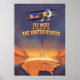 Fly West Beautiful détails chaleureux orange vintage style de navigation affiche de voyage vers les États-Unis.